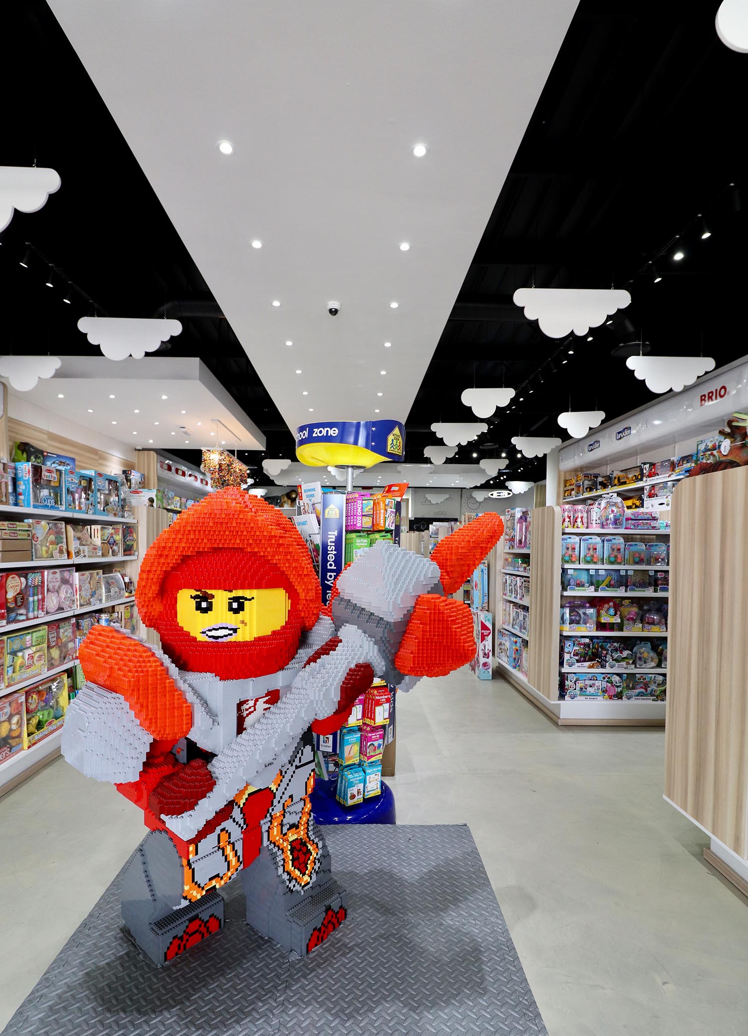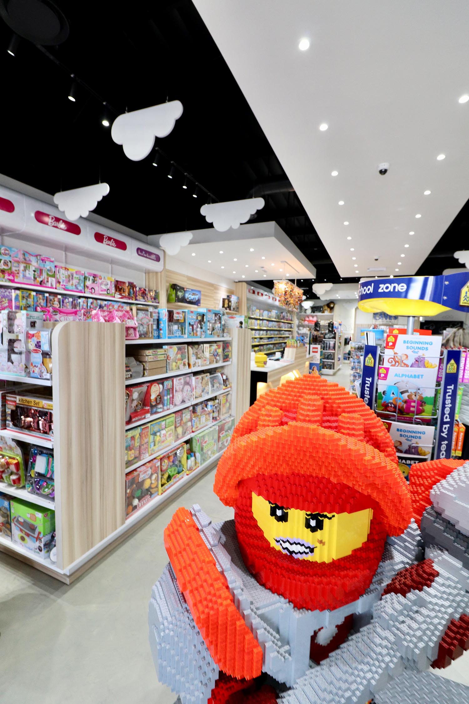 Candice Brophy, creative director of Earth Interior Architects says “We wanted to create a fun and bright space with interesting design elements that caught both the attention of parents and children alike, we also added retail experience elements to keep customers in the store for longer such as the Lego play area, ball pit for the babies and finding all the different shapes and colored Lego elements in the floor. My personal favorite is the Lego chandelier above the sales counter”