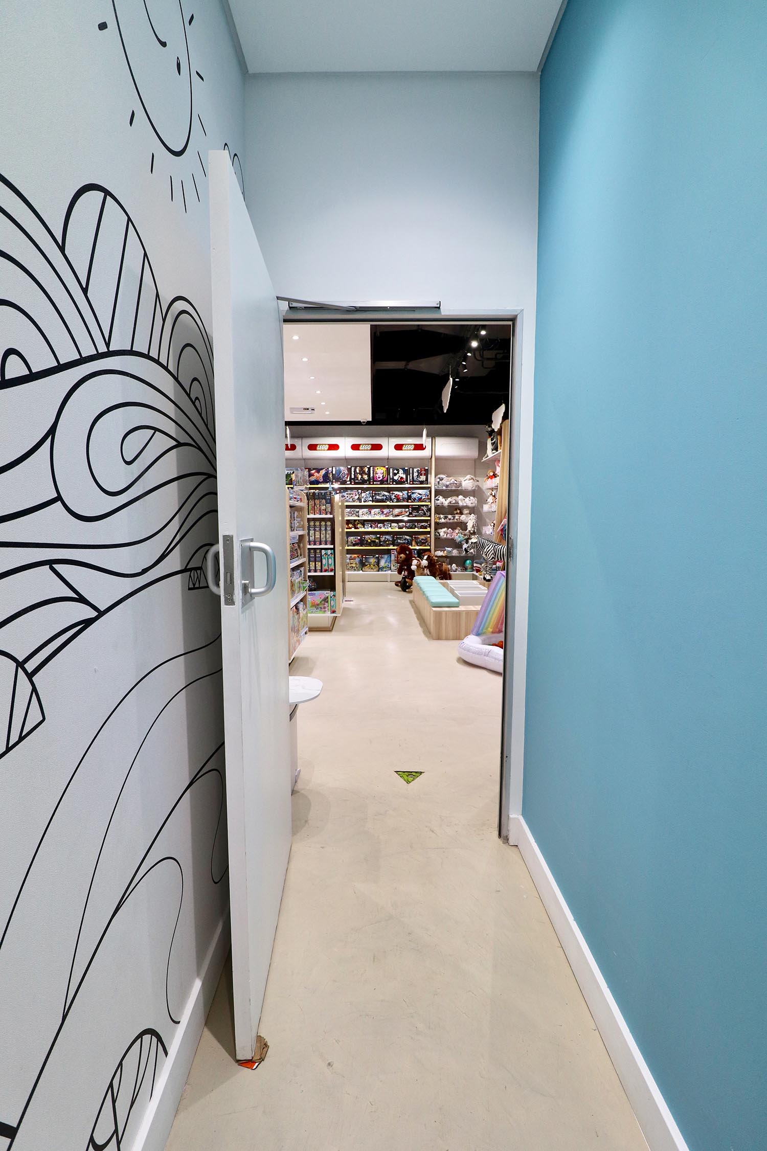 The colour palette is muted and calm so that the toys are the items on show adding colour and character once the store is merchandized and ensuring it does not become too busy and overwhelming.