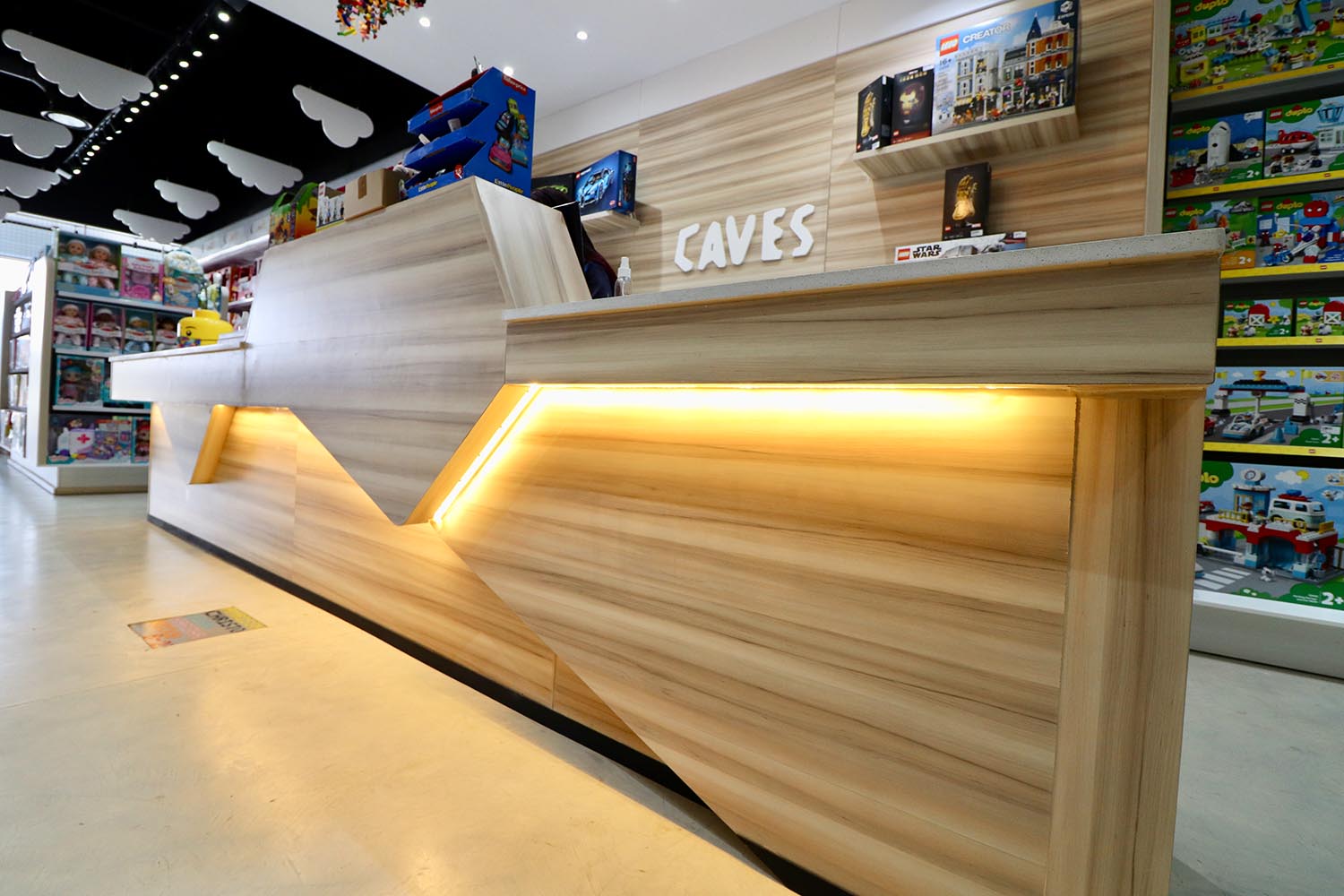 The second store for Caves toys & hobbies opened in Blueberry Square in June. Earth Interior Architects worked closely with the Caves team to re-imagine the toy stores look for this destination space.