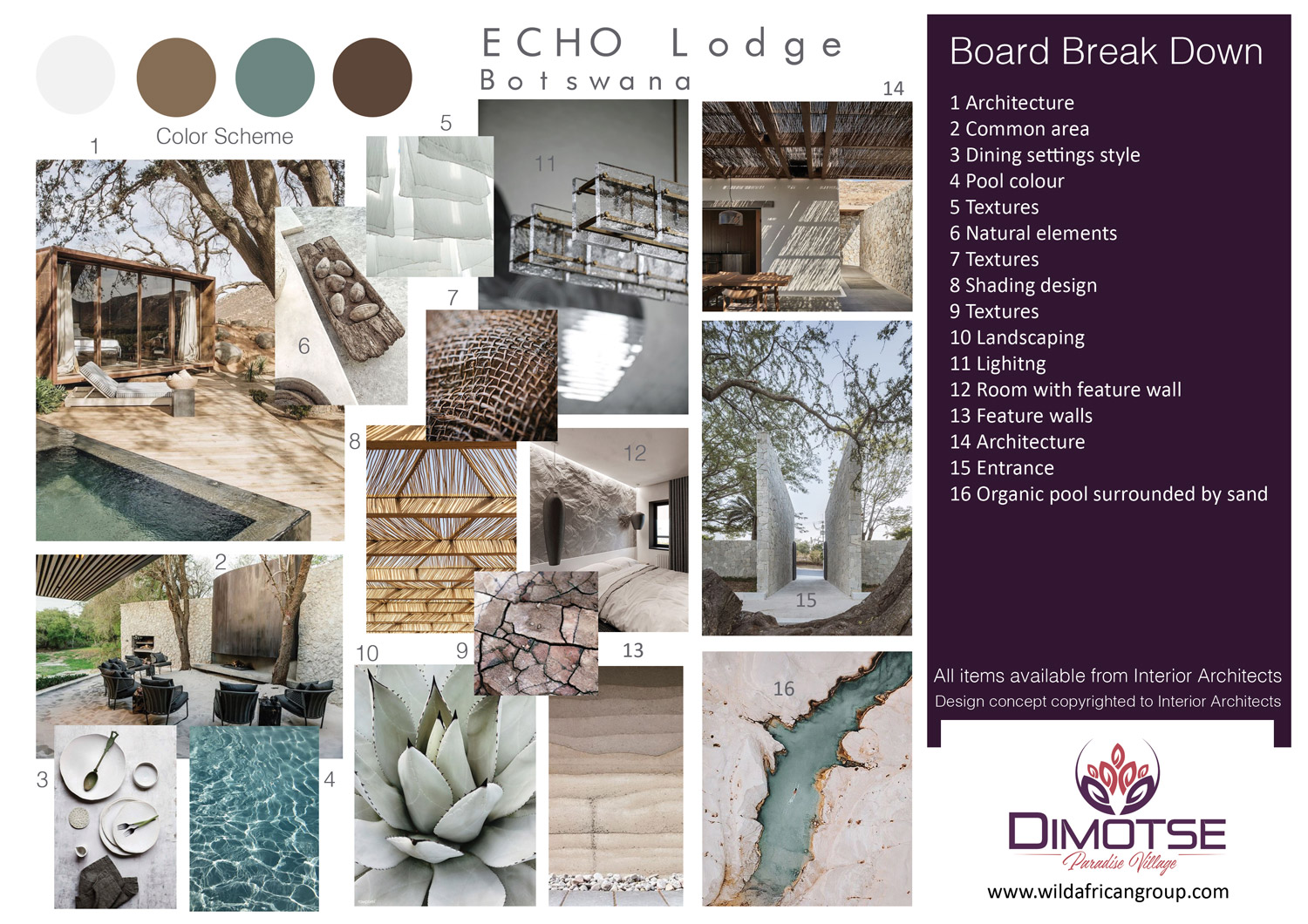 The design concept for the lodge is earth tones and textures to blend with the natural surroundings. We chose to predominantly build using rammed earth, both for the aesthetics of the finished product as well as its durability and thermal mass properties making it very eco friendly.