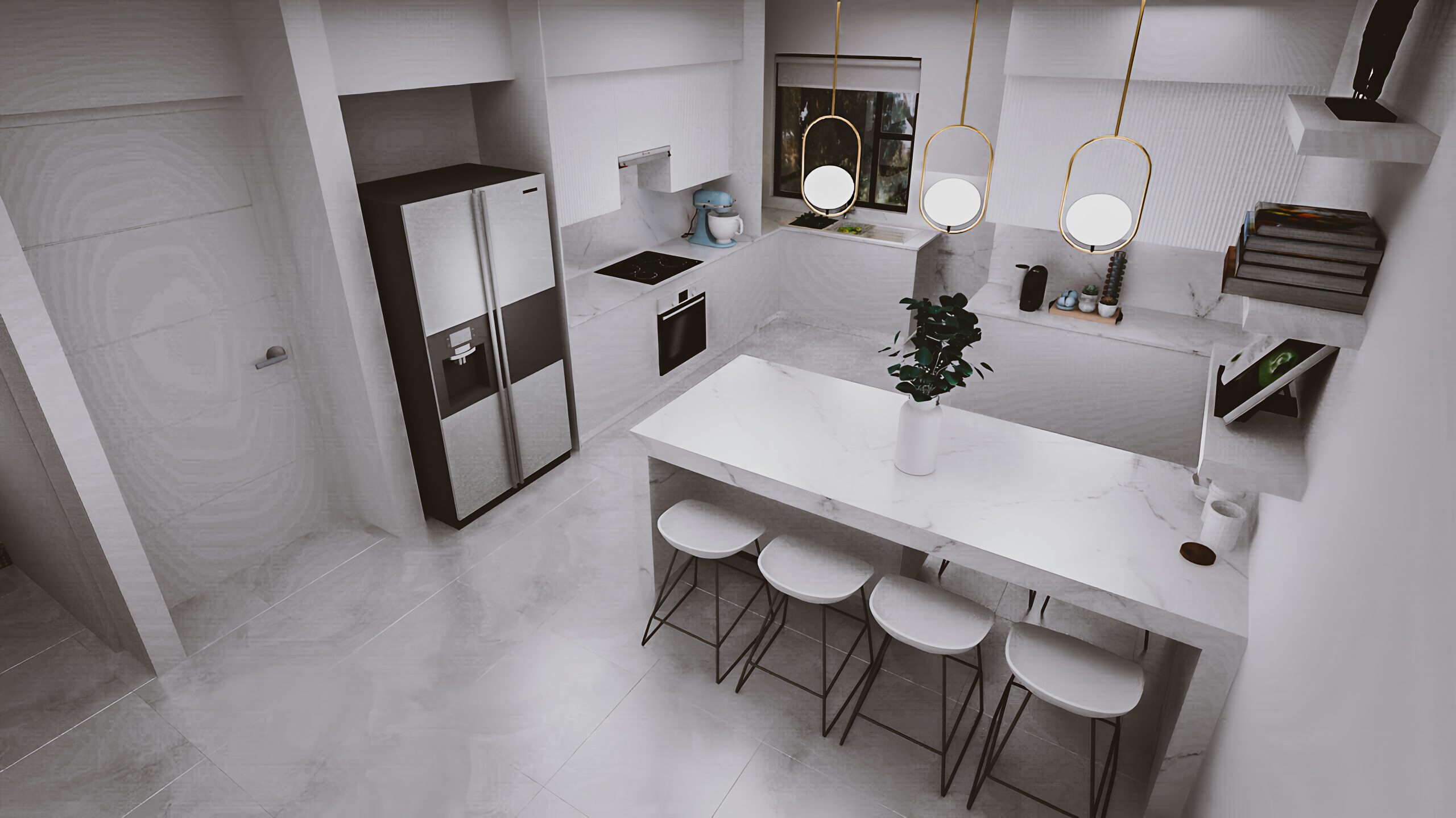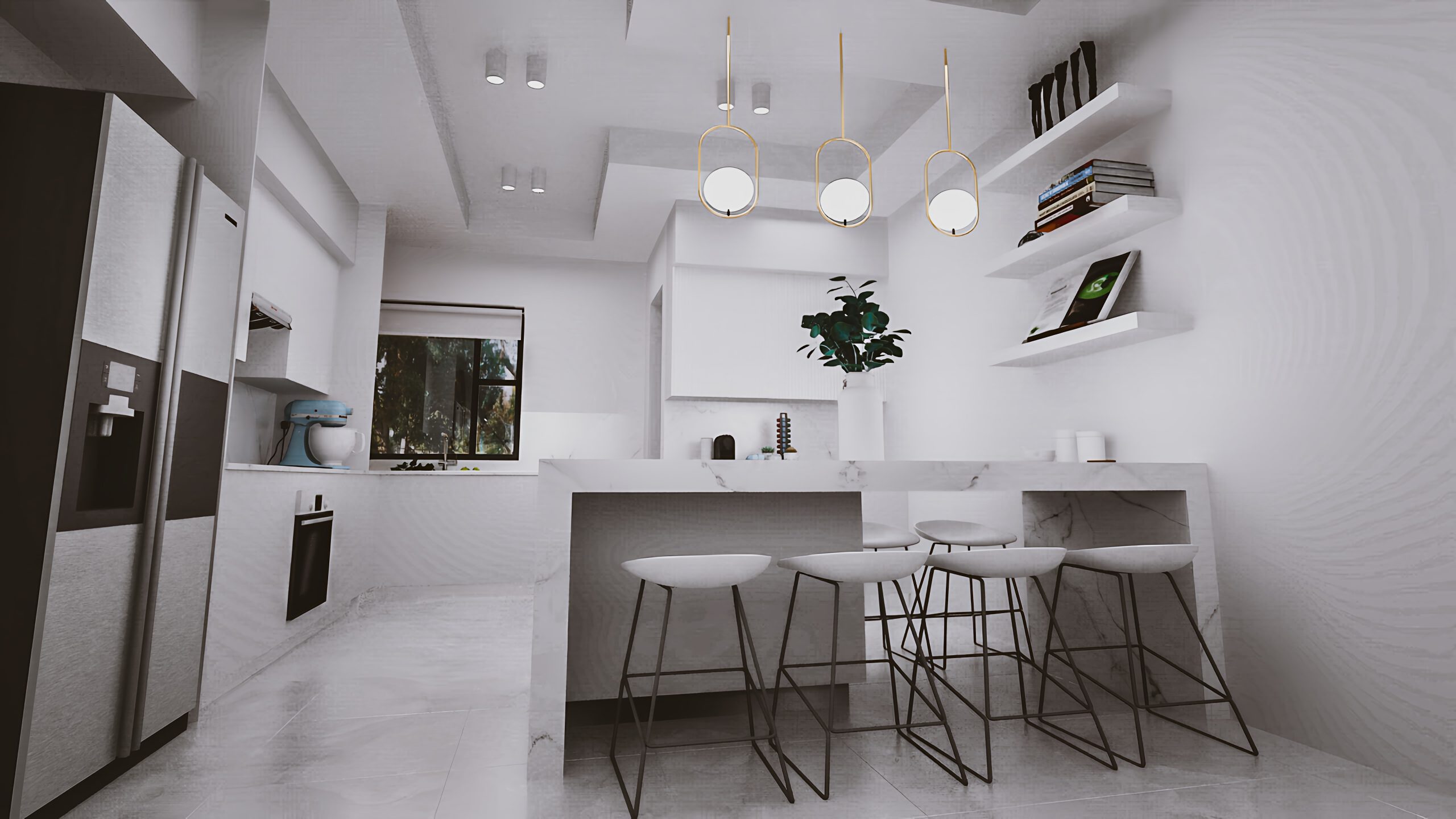 The brief was a bright and light base palet using beautiful materials to create different textures and points of interest. Pops of blue bring in some colour and some character to the space.