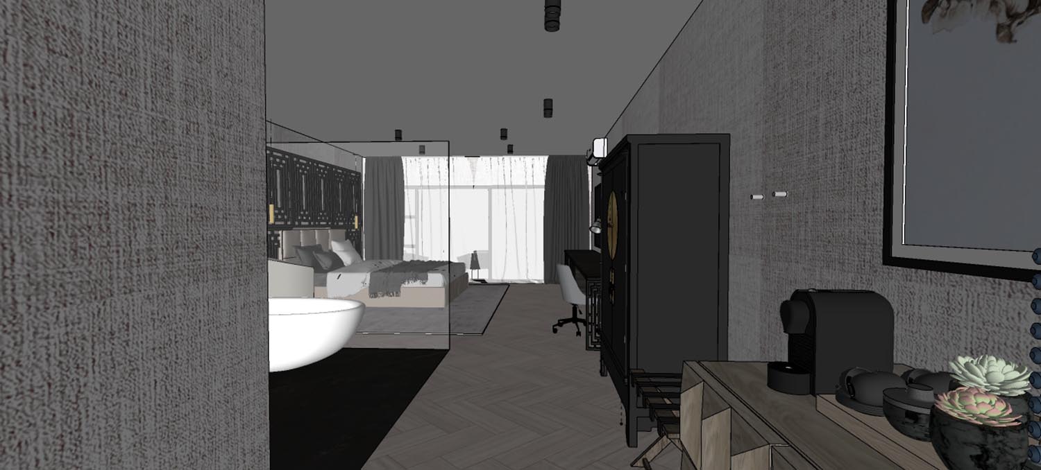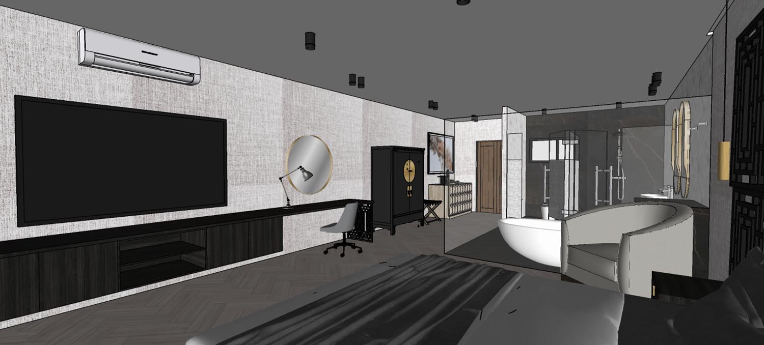 Riverside is a beautiful boutique hotel based in the DRC. We were appointed to extend the hotel rooms, add a new spa and coffee shop and redo the existing restaurant. We chose natural tones and textures combining modern furniture and decorative elements with panelling and moulded details creating a sophisticated and elegant look. The additional hotel rooms are modern Chinese, trellis details along with the Chinese cloths cupboard.
